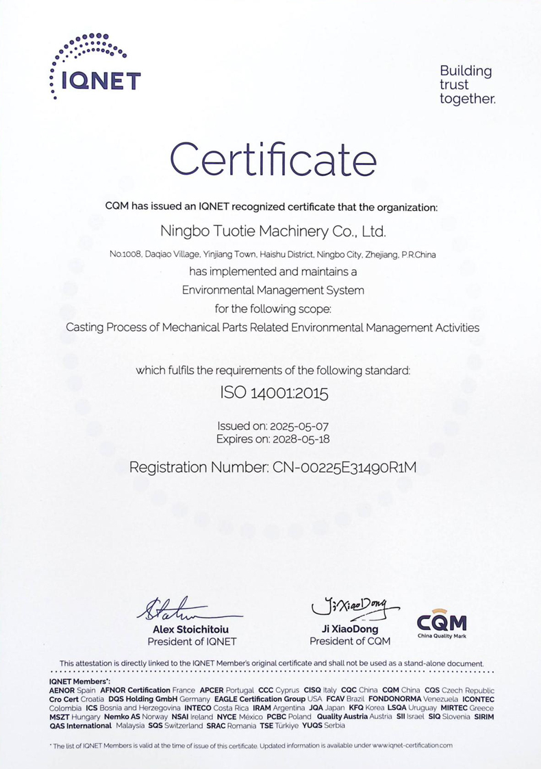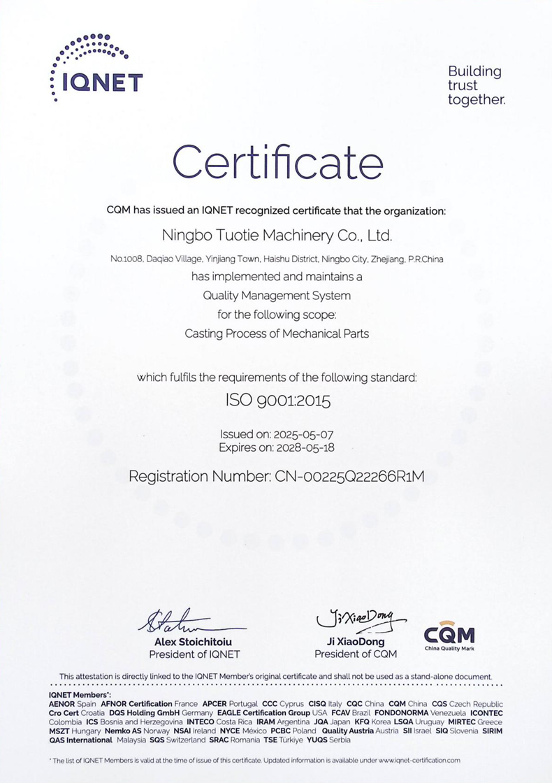 T Foundry (Ningbo Tuotie Machinery Co., Ltd.) is a high-tech enterprise certified by the state, a professional foundry which has annealing and machining ability, located next to the expressway network in Ningbo China. Its total investment reaches 200 million RMB, where environmental protection facilities’ investment exceeds 20 million RMB.The ....