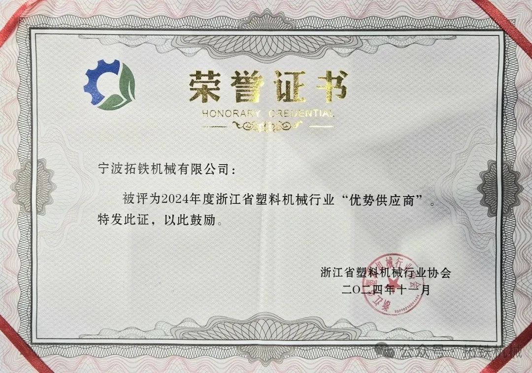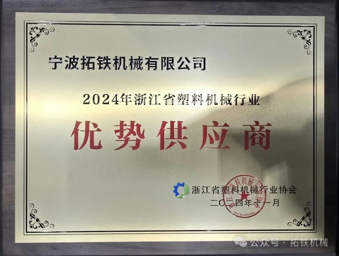 这是公司继2023年荣获宁波市塑机协会该项荣誉后,再度获评殊荣;也代表客户行业对于拓铁的肯定。公司将继续一步一个脚印,踏踏实实发展,力争得到各行业更广泛的认可。