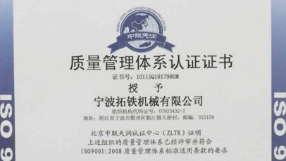 2014年11月,乾辰重工获得国家ISO9001质量管理体系认证和ISO14001环境管理体系认证。